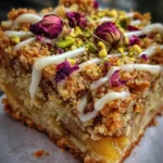 These easy apple pie bars offer a comforting, family-friendly treat perfect for weeknights or special occasions. Featuring a tender crust, spiced apple filling, crunchy pistachio crumble, and a delicate cardamom-rose glaze, they promise a delightful dessert with minimal fuss.