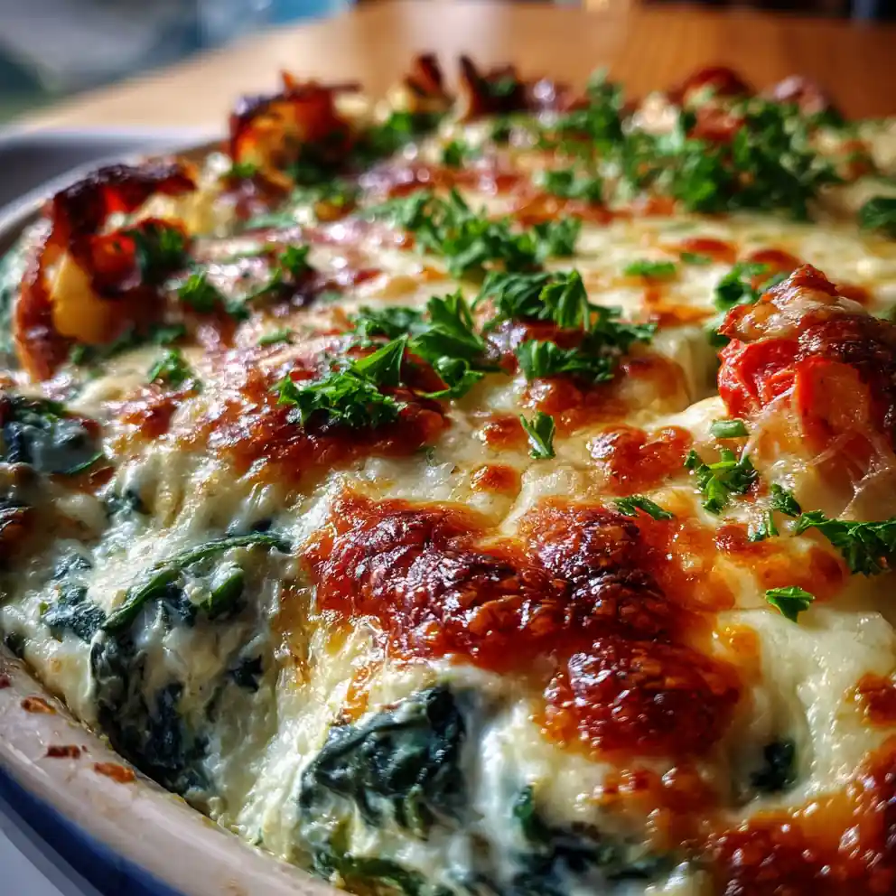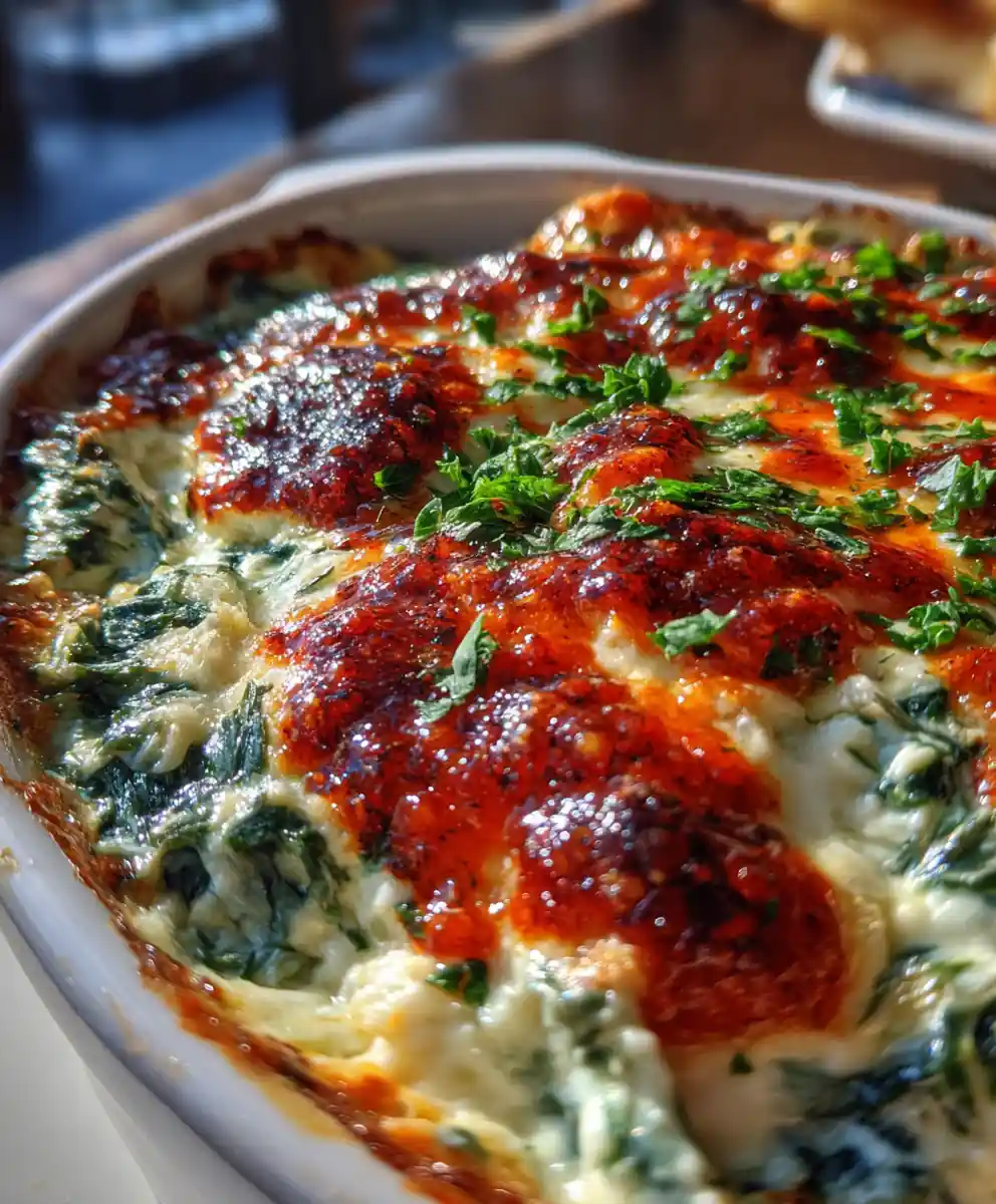 This warm and creamy spinach dip, inspired by Applebee’s, features a smoky roasted red pepper swirl for an extra layer of flavor. It’s a perfect appetizer for gatherings and easy to prepare at home for a crowd.