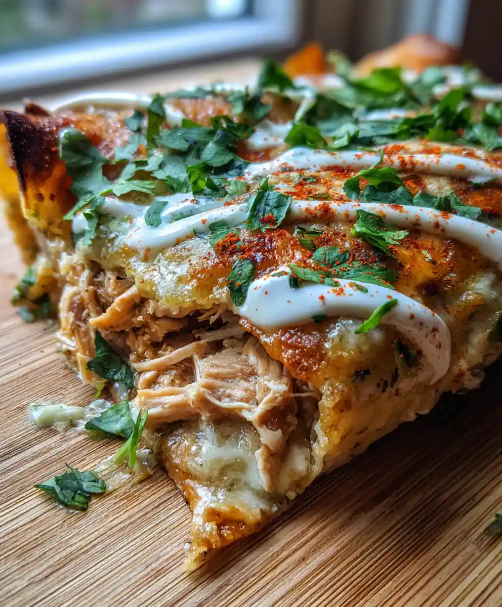 - Cover and Bake: Pour remaining Verde Sauce over enchiladas. For the crema, whisk 120 g (0.5 cup) sour cream, 1-2 finely minced chipotle peppers in adobo, 5 ml (1 teaspoon) lime juice, and 2.5 ml (0.5 teaspoon) smoked paprika with a pinch of salt. Drizzle crema over green sauce. Sprinkle with more cheese. Bake at 190ยฐC (375ยฐF) for 20-25 minutes until bubbly and golden.