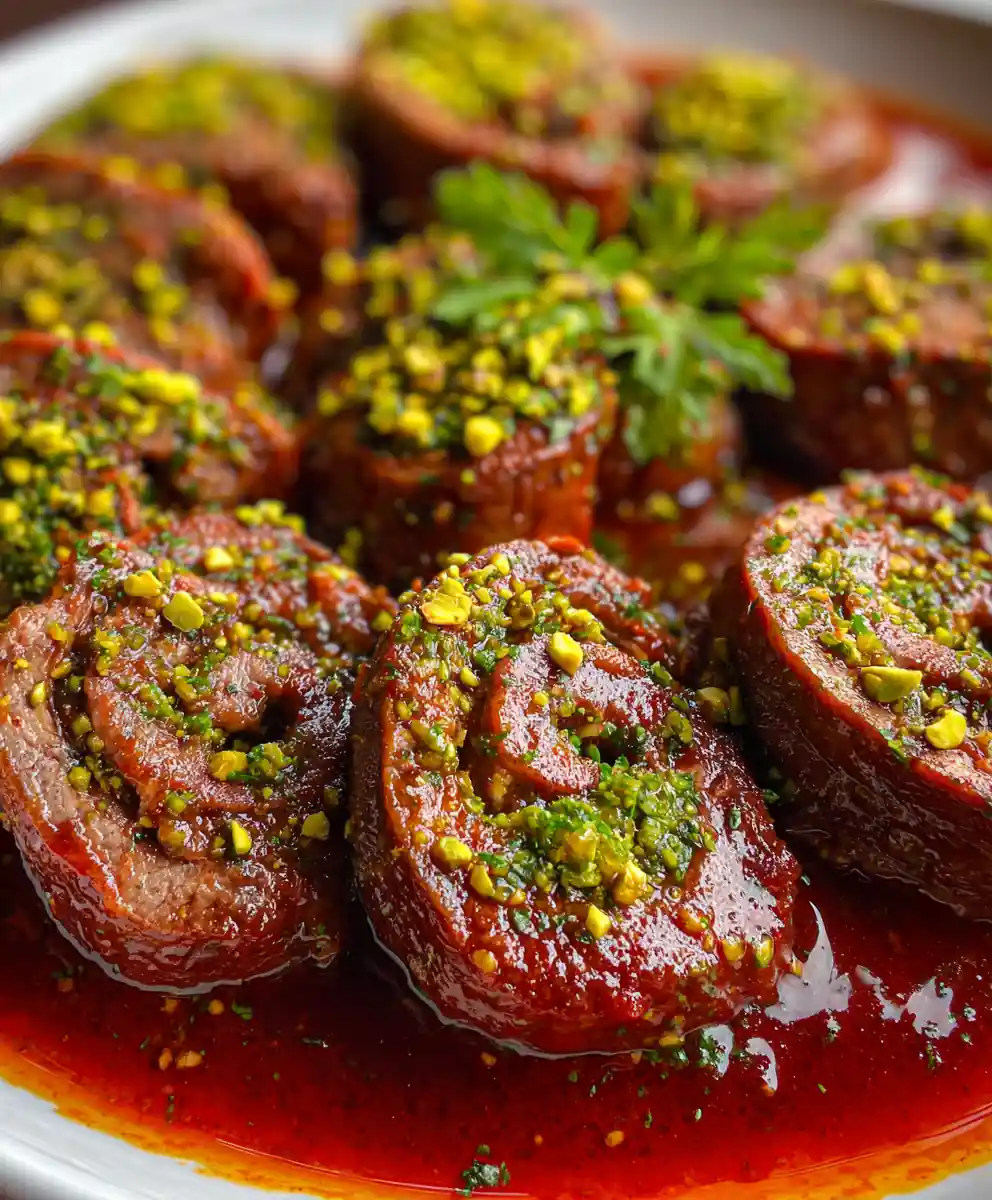 This easy beef braciole recipe features tender beef rolls filled with a savory mix of breadcrumbs, pistachios, and herbs, slow-simmered in a rich tomato sauce for a deeply satisfying Italian meal perfect for weeknights.