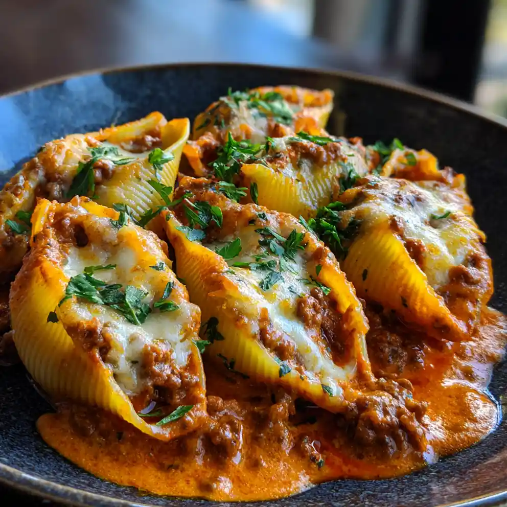 This comforting stuffed shells recipe features jumbo pasta shells filled with a savory blend of lean ground beef, ricotta, mozzarella, and Parmesan cheeses, all baked in a rich tomato and cream sauce. It’s a satisfying and family-friendly meal perfect for busy weeknights.