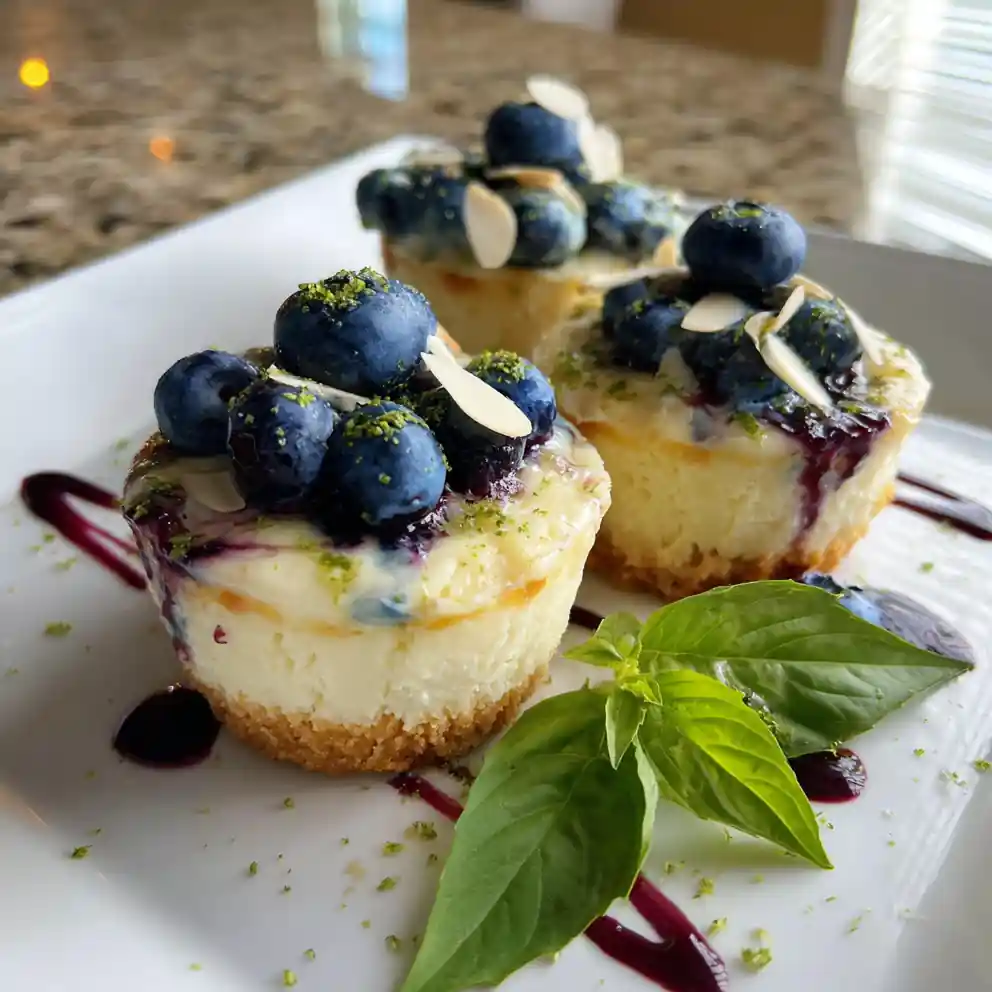 These Blueberry Lime Cheesecake Cupcakes offer a delightful fusion of creamy cheesecake, tangy lime, and sweet blueberries, enhanced by a surprising hint of fresh basil. A toasted almond garnish adds a satisfying crunch to this unforgettable treat.