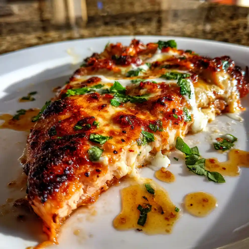 - Bake to Perfection: Bake in the preheated oven for 18-20 minutes. The cheese should be bubbling and lightly browned, and the internal temperature of the chicken must reach 74ยฐC (165ยฐF). Use a meat thermometer to ensure the chicken is cooked through for food safety.