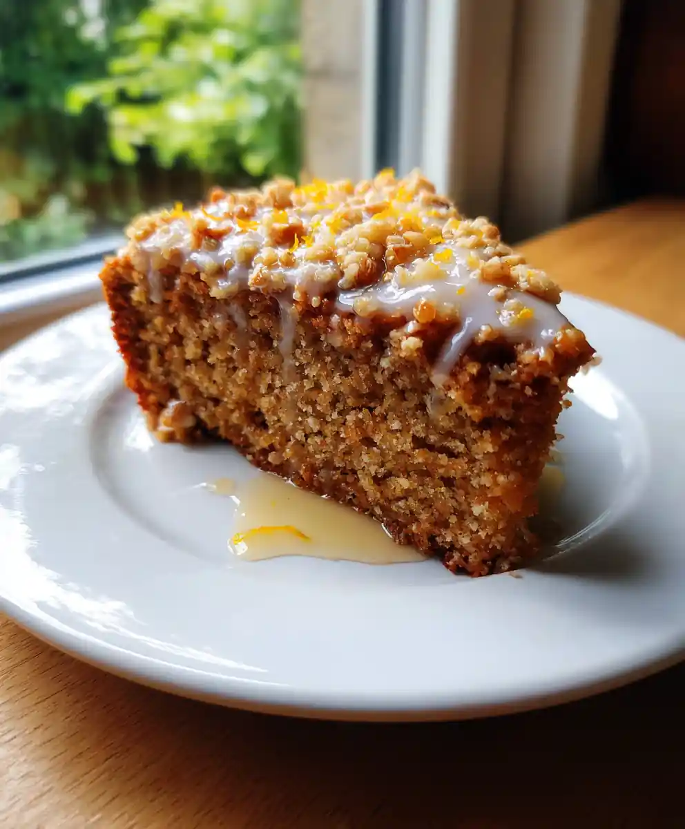 - Glaze & Garnish: Drizzle glaze over cooled cake and garnish with zest and almonds.