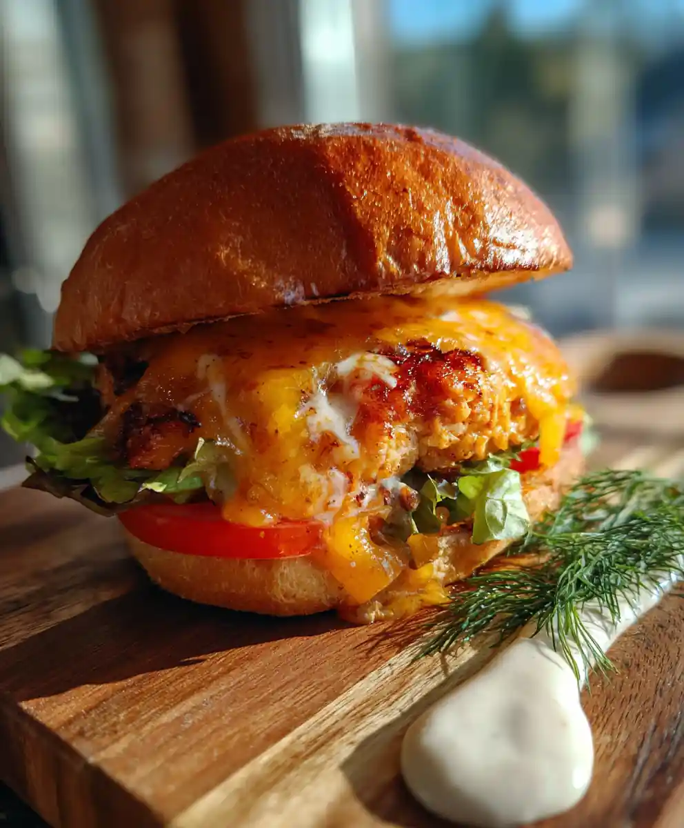 These Cheddar Onion Jam Chicken Burgers offer a gourmet experience with juicy chicken patties stuffed with a sweet and savory cheddar onion jam, topped with a zesty ranch mayo. It’s a flavorful and impressive burger you can easily make at home.