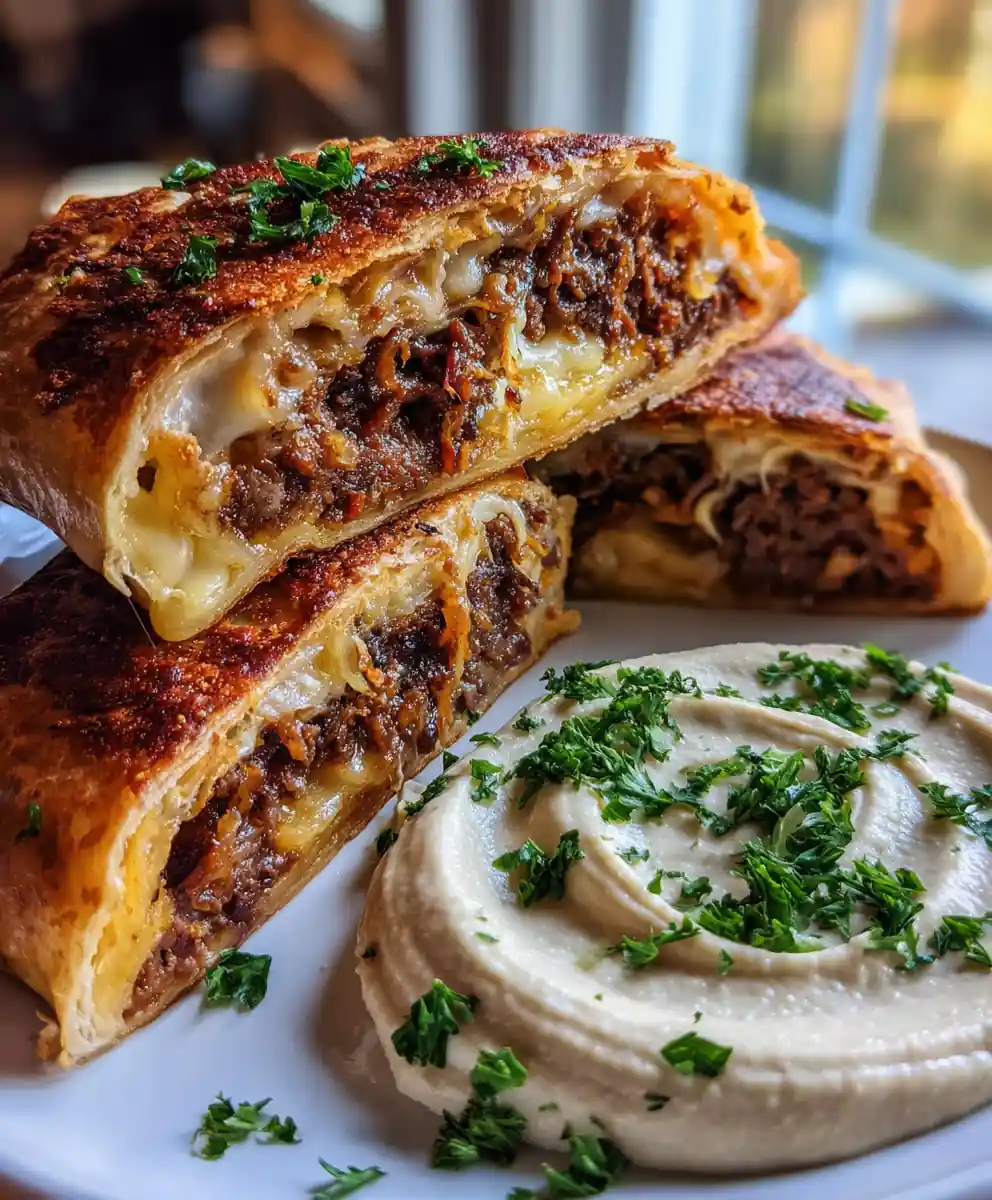 - Cook Beef Filling: Sear beef in the same skillet on high heat for 1-2 minutes per side until browned. Stir in minced garlic, harissa paste, smoked paprika, salt, and pepper, cooking for 2-3 minutes until fragrant. Remove from heat, mix in the caramelized onions, and let cool for 5-10 minutes (add a splash of broth if beef looks dry).