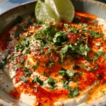 This chipotle sour cream recipe features a vibrant red pepper swirl and a smoky-spicy kick, ideal for upgrading tacos, grilled chicken, and more.