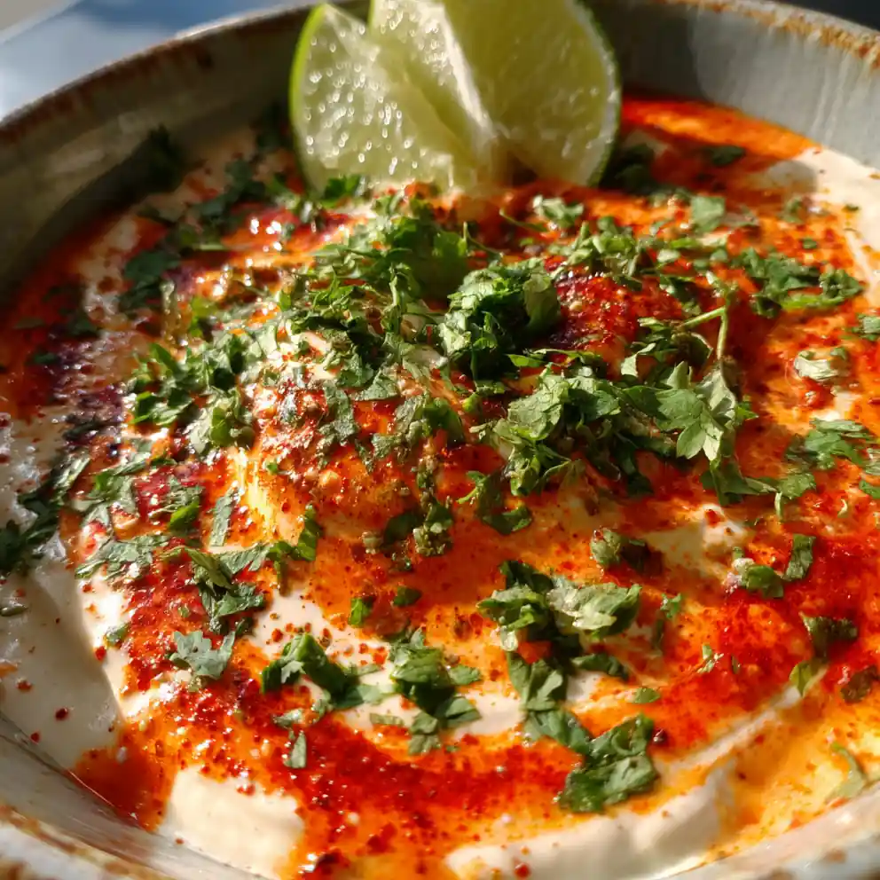 - Final Presentation: Create a gentle mound with a spoon and drizzle the remaining red pepper sauce artistically over one side. Sprinkle with finely chopped fresh cilantro and garnish with lime wedges.