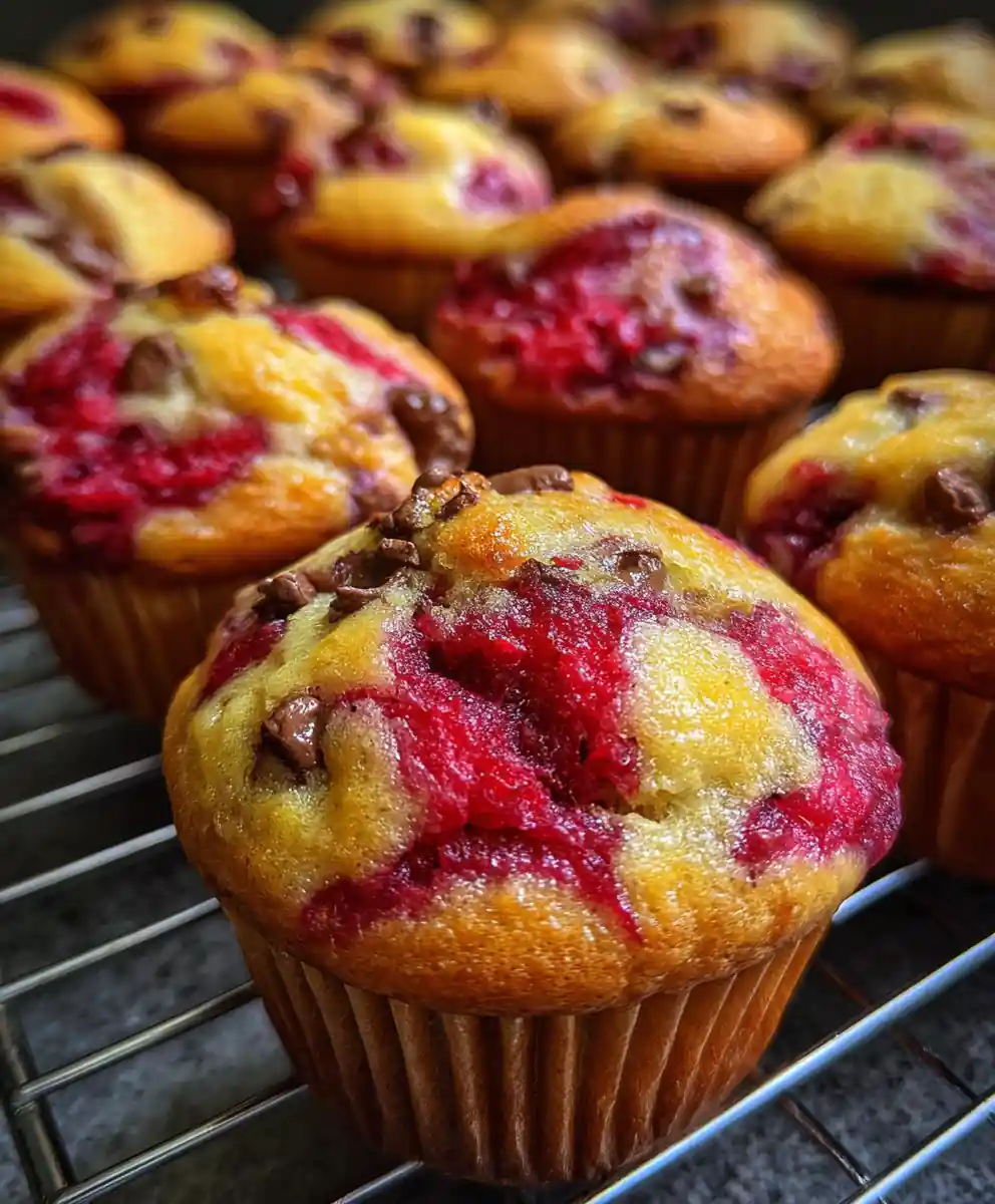 I’ve refined this chocolate chip muffin recipe to guarantee perfect results every time. Imagine the aroma of warm vanilla and sweet chocolate filling your kitchen, with bursts of tart ruby raspberry rippling through each fluffy bite. This simple approach makes homemade treats a reality for busy families, offering a delightful and easy breakfast or snack solution, especially this chocolate chip muffin recipe With Ruby Raspberry Ripple Tops.