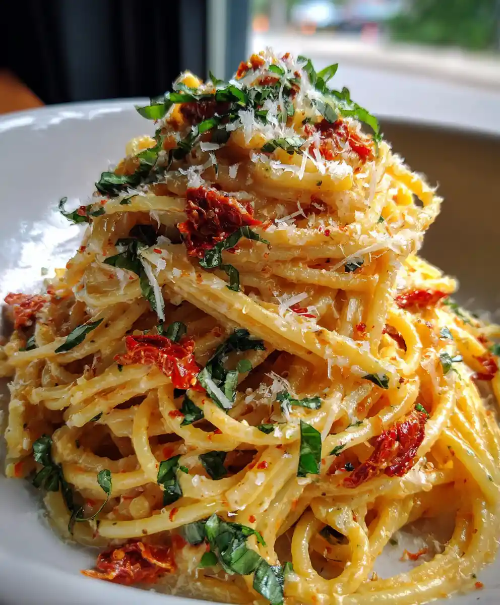- Combine and Swirl: Add drained pasta to the skillet with the sauce and toss gently to coat. Add reserved pasta water as needed to reach desired consistency. Fold large spoonfuls of the sun-dried tomato mixture into the pasta, allowing distinct red-orange swirls to remain visible.