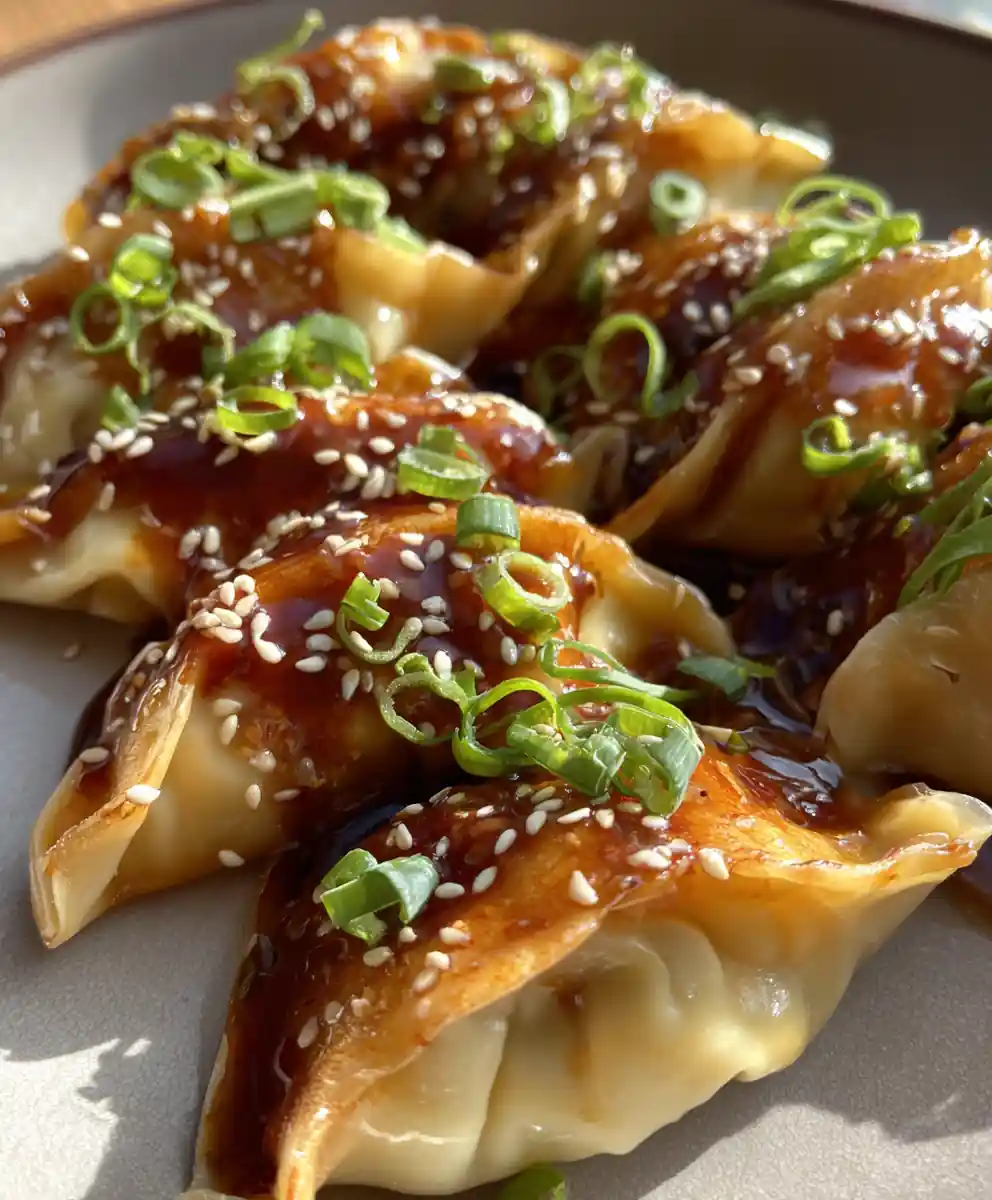 For a different texture, arrange dumplings on a greased baking sheet and bake at 400ยฐF (200ยฐC) for 15-20 minutes until golden brown, then add the glaze. This creates a slightly crispier, drier dumpling rather than the classic juicy pan-fried texture of this easy dumpling recipe.