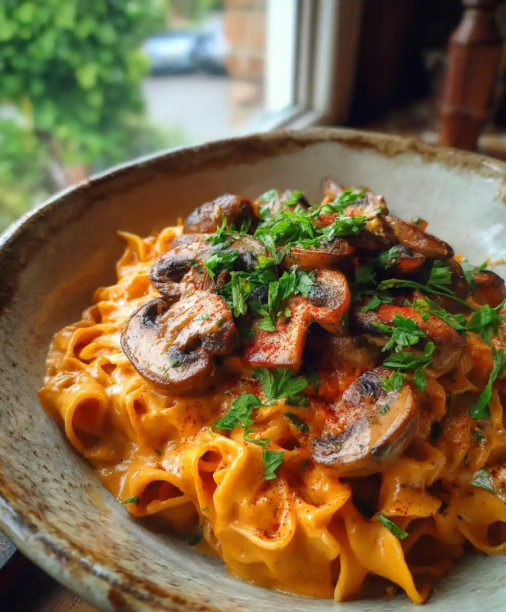 A vibrant and creamy roasted red pepper egg noodle dish with smoked paprika, designed for a fast weeknight meal and ready in just 25 minutes.