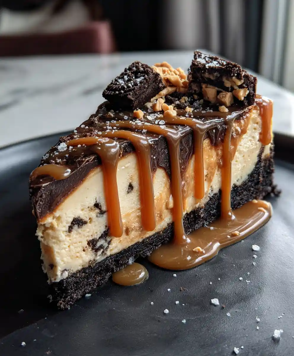 Indulge in a decadent Espresso Caramel Reese’s Oreo Cheesecake, featuring a crunchy Oreo crust, creamy peanut butter filling, and swirls of rich espresso caramel. This dessert is a symphony of flavors and textures, perfect for any special occasion.