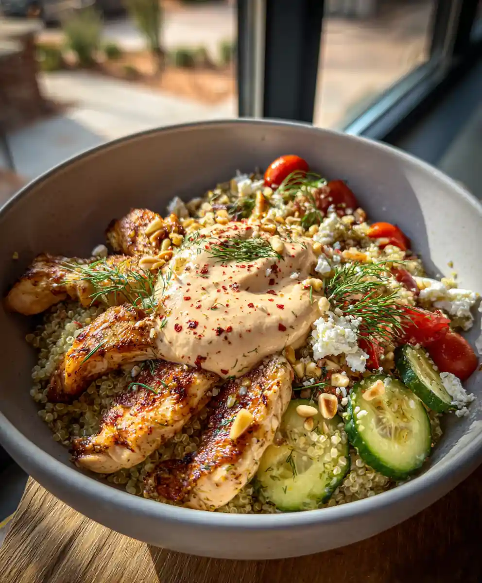 Craving a vibrant, healthy, and incredibly flavorful meal? Look no further than these Greek Chicken Bowls with Roasted Red Pepper Feta Cream! This recipe brings together the bright, fresh flavors of the Mediterranean โ tender chicken, crisp vegetables, fluffy quinoa, and a creamy, dreamy roasted red pepper feta sauce. Itโs perfect for a quick weeknight dinner, meal prepping for lunches, or a light yet satisfying meal any time of day. Get ready to experience a burst of sunshine in every bite!