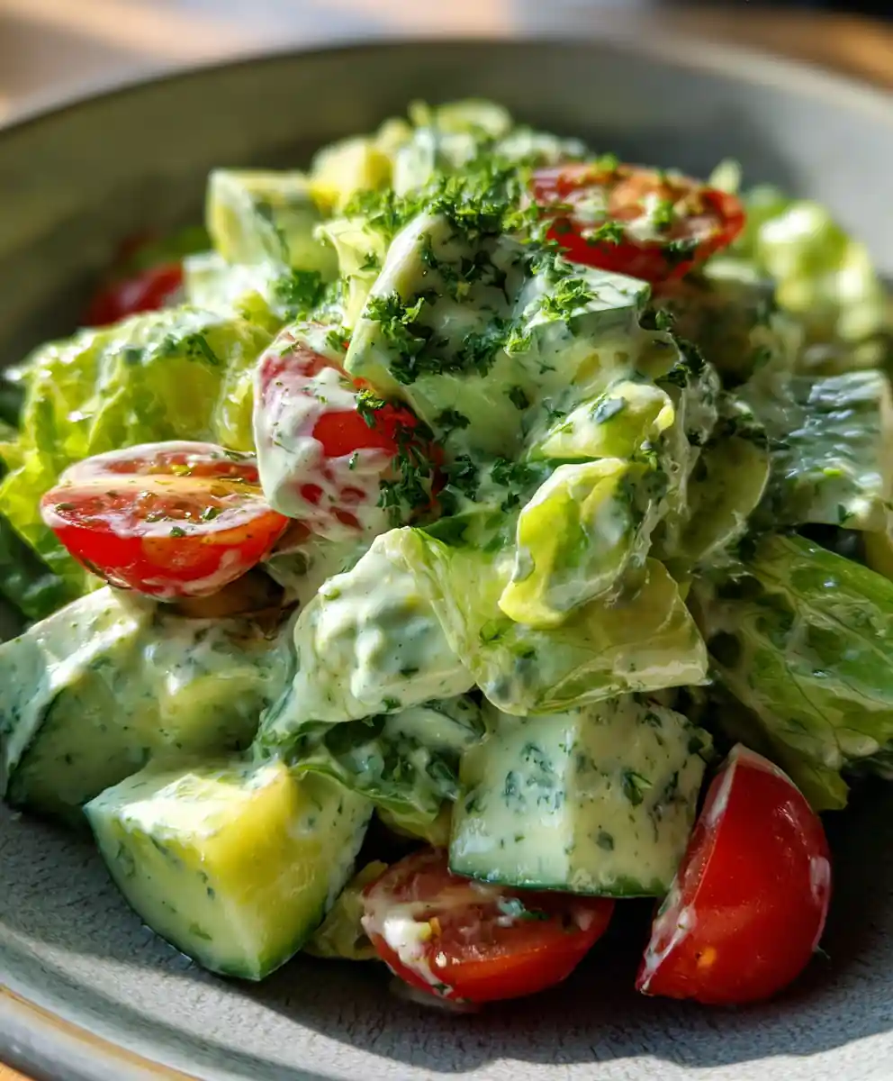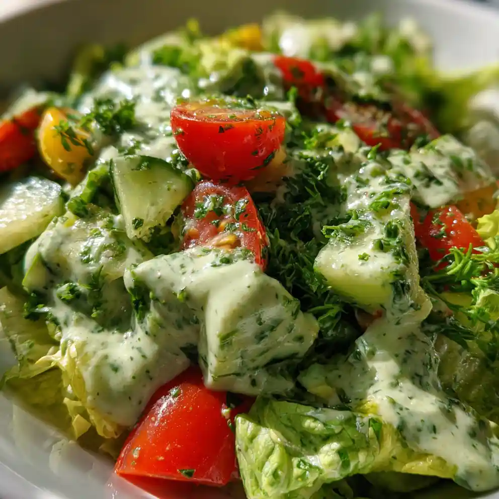 4. Toss and Serve: Gently toss all ingredients until they are evenly coated in the creamy dressing. Serve immediately while the greens are crisp and the dressing is fresh. The aroma of fresh herbs will be quite enticing.
