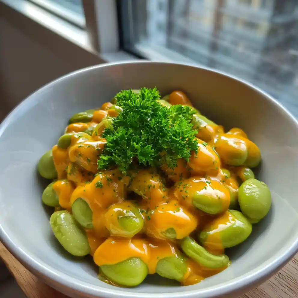 A creamy, flavorful side dish featuring lima beans in a rich sauce of heavy cream, smoked paprika, and saffron. This recipe transforms a simple vegetable into an elegant comfort food suitable for weeknights or holidays.