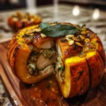 This Maple Brown Butter Sage Ground Turkey Stuffed Pumpkin is a show-stopping main course perfect for fall gatherings. Tender roasted pumpkin is filled with a savory-sweet turkey mixture, creating a comforting and visually stunning dish.