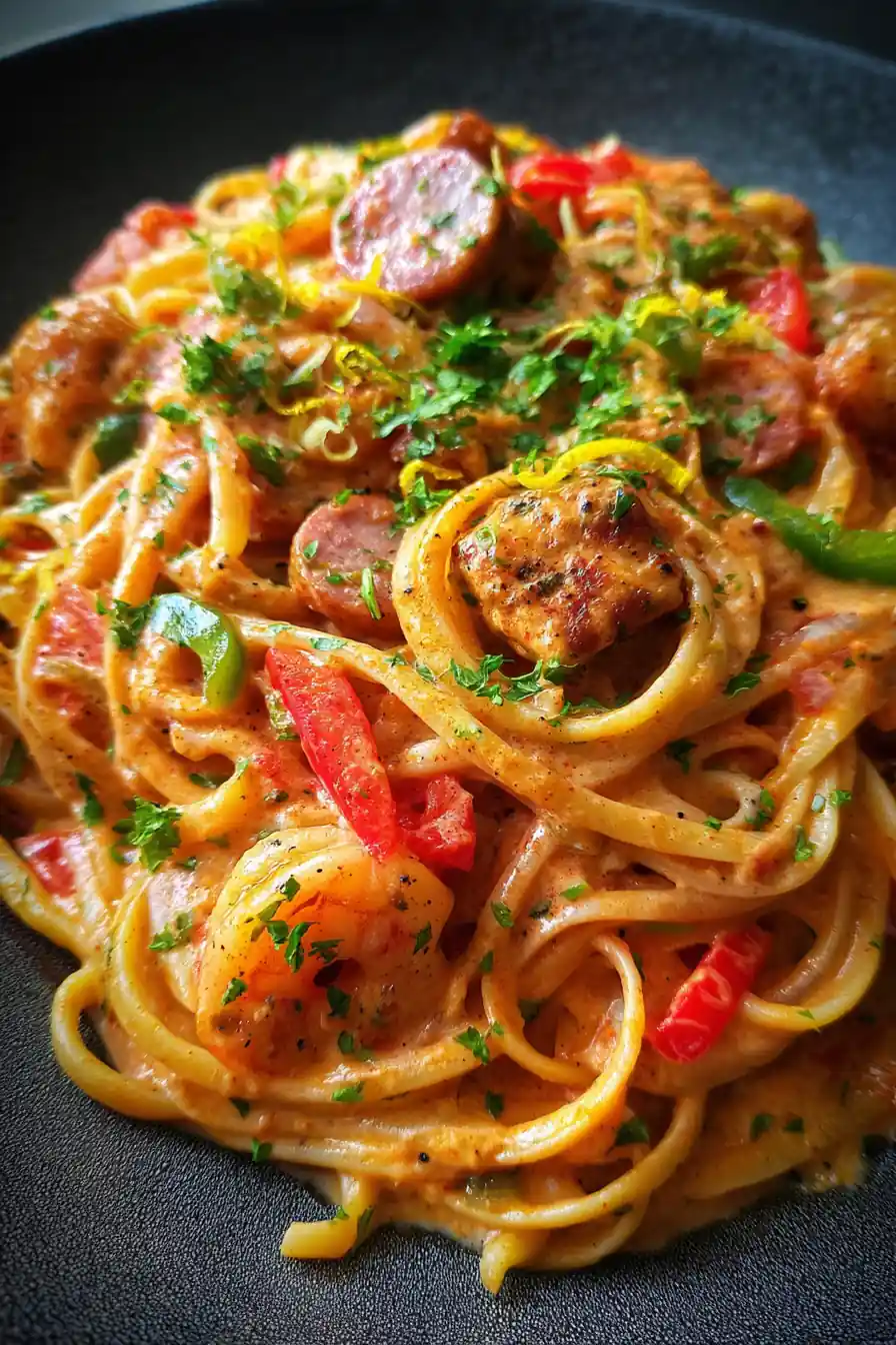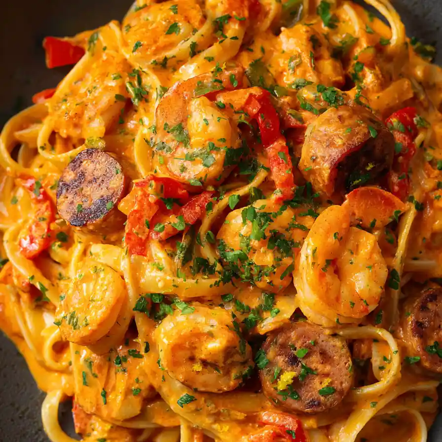 Experience the vibrant flavors of New Orleans with this creamy, spicy Mardi Gras Pasta, featuring chicken, sausage, shrimp, and a colorful blend of bell peppers in a Cajun-infused sauce. This dish is perfect for a special occasion or a satisfying weeknight meal.