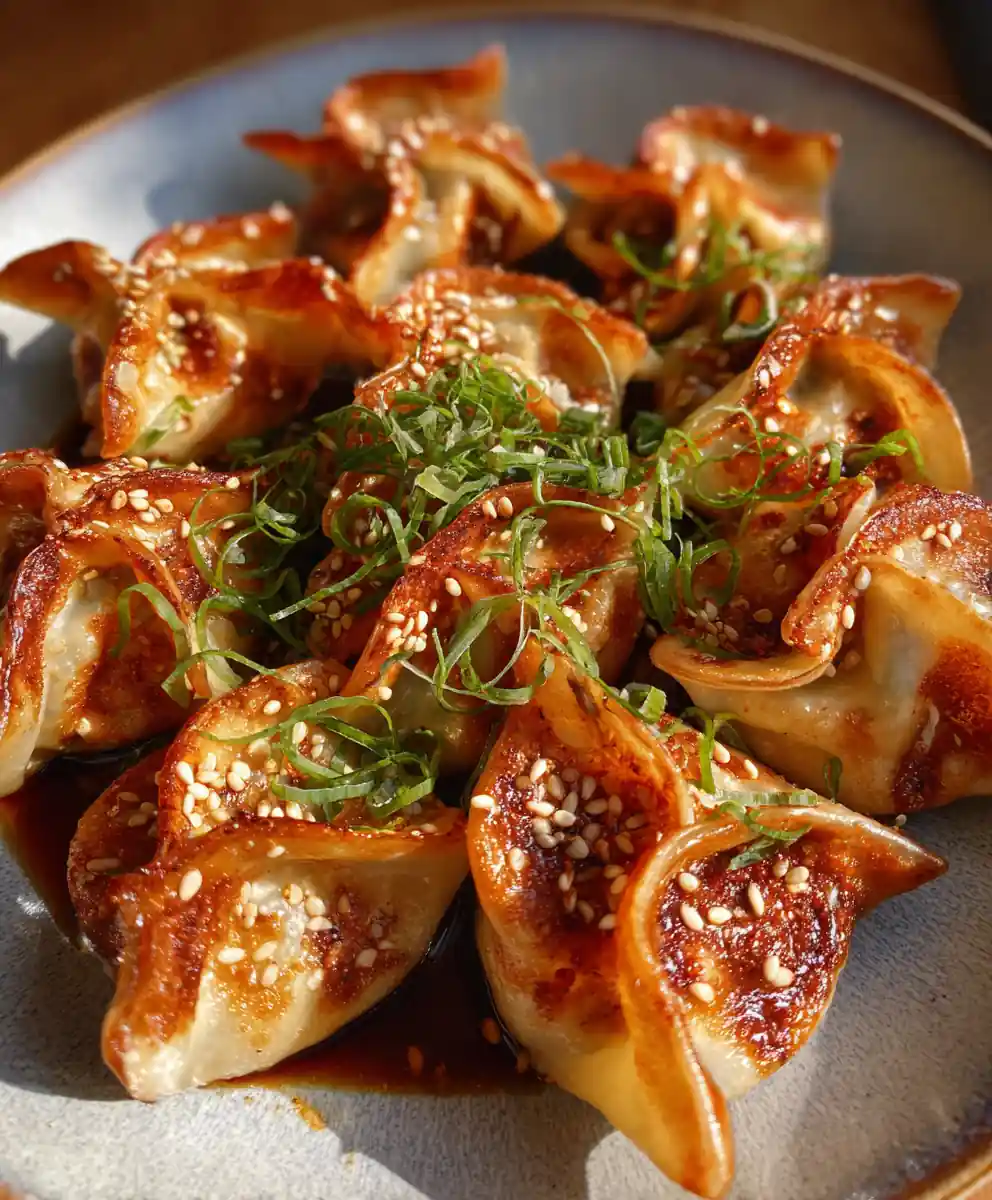 - Prepare Dipping Sauce: Whisk together 60ml soy sauce, rice vinegar, 15ml sesame oil, and optional gochugaru. Garnish cooked potstickers with green onions and sesame seeds and serve with the sauce.