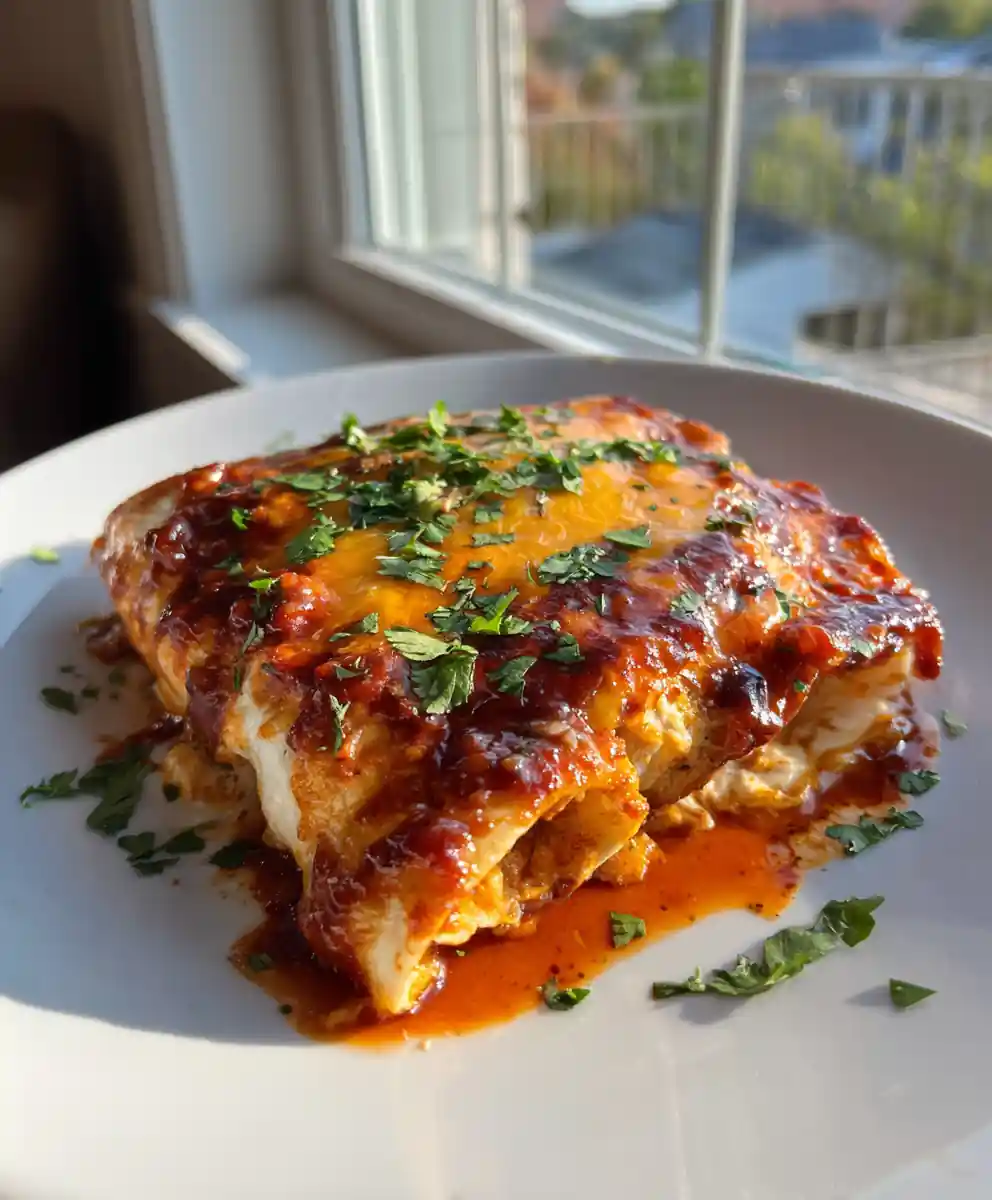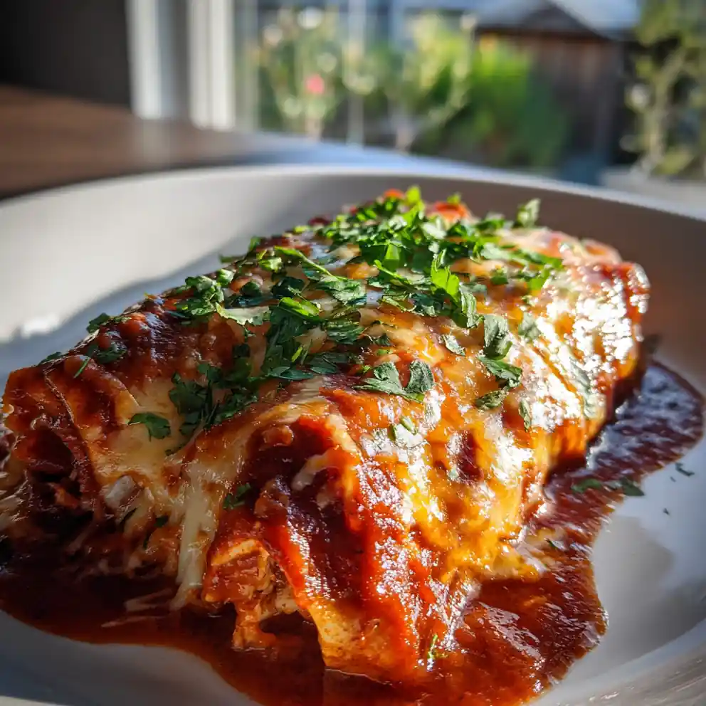 5. Bake and Serve: Pour the remaining sauce over the rolled enchiladas and top with the remaining cheese. Bake for 20-25 minutes, or until the sauce is bubbly and the cheese is melted and golden brown. Let rest for 5-10 minutes before serving, garnished with fresh cilantro.
