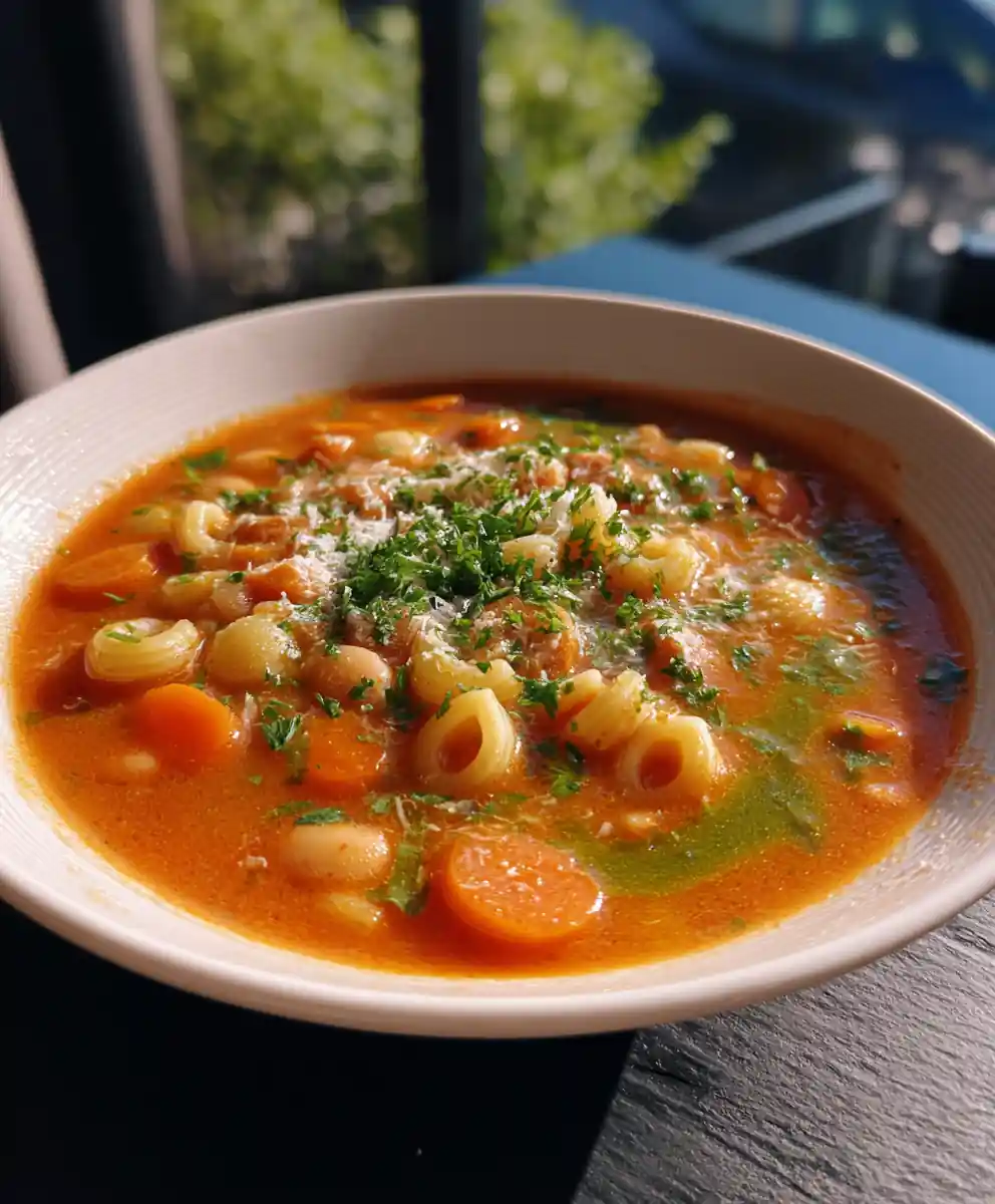 - Serve & Garnish: Ladle soup, drizzle with lemon-basil oil, and garnish with cheese and parsley.