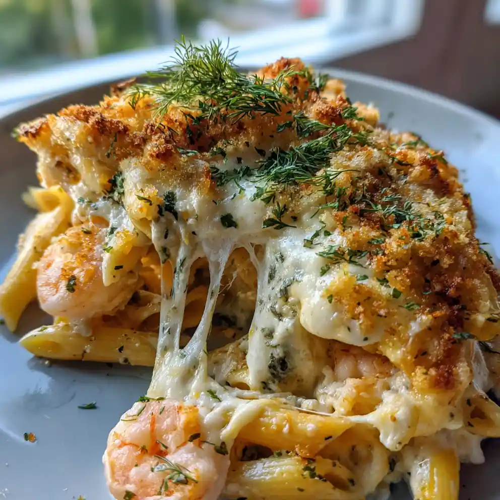 Step 1: Cook penne pasta according to package directions until al dente (about 8-10 minutes); drain well. Preheat your oven to 190ยฐC (375ยฐF) and lightly grease a 23×33 cm (9×13 inch) baking dish, ready for a comforting shrimp scampi pasta bake recipe.