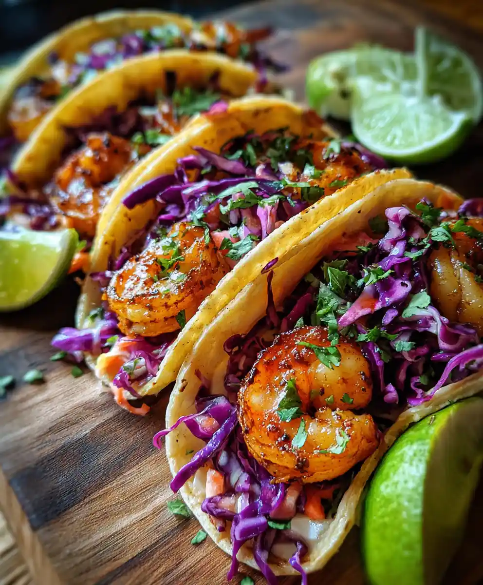 - Assemble Tacos: Place a spoonful of the vibrant purple cabbage slaw onto each warm tortilla. Top with several cooked shrimp. Garnish with extra fresh cilantro and a final squeeze of lime juice. Serve immediately.