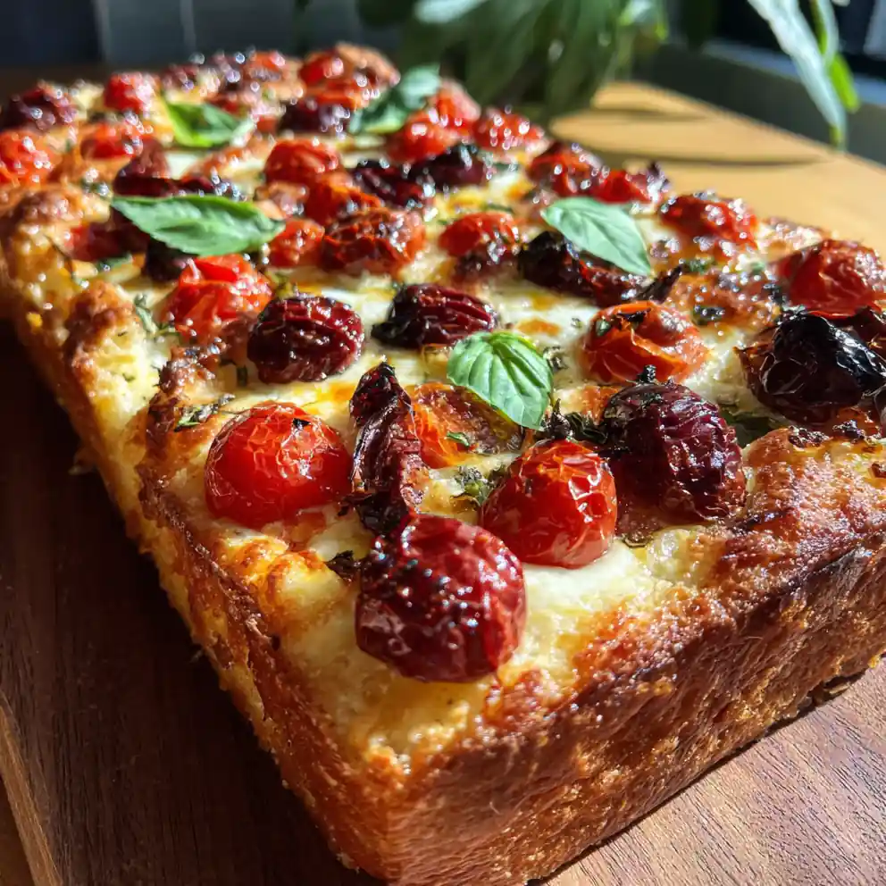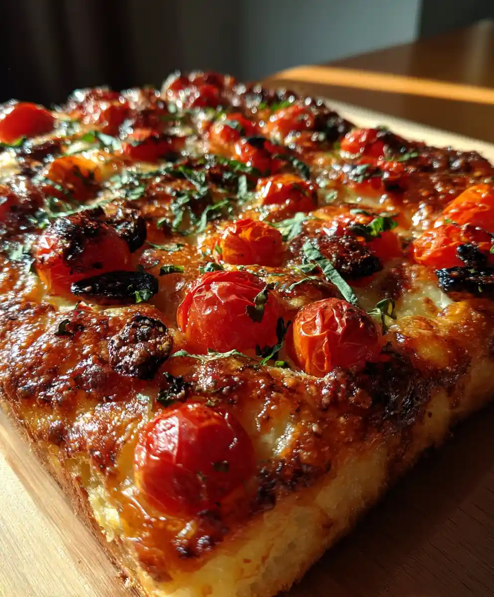 This recipe delivers a delicious Sicilian pizza with roasted cherry tomatoes and olives on a thick, airy crust, perfect for an easy weeknight family meal. It combines fresh ingredients for a satisfying sensory experience.