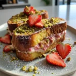 Indulge in a decadent breakfast with Strawberry Cheesecake French Toast, featuring a luscious strawberry cheesecake filling and a crunchy pistachio brown butter crumble. This recipe elevates classic French toast to a whole new level of flavor and texture.