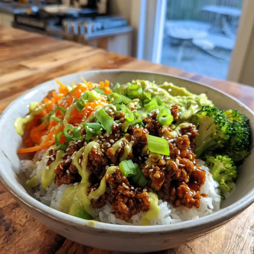 These Teriyaki Ground Turkey Bowls offer a quick and healthy meal featuring savory teriyaki-glazed turkey, steamed vegetables, and a creamy avocado-lime drizzle. It’s a complete and flavorful dish ready in under 30 minutes.