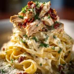 This recipe elevates classic chicken alfredo by incorporating roasted garlic and sun-dried tomatoes for a deep, complex flavor profile. The velvety sauce and golden-seared chicken create a restaurant-quality meal perfect for a family weeknight dinner.