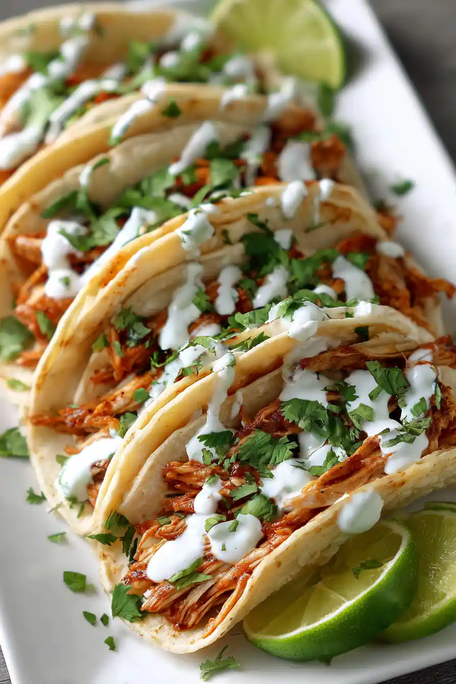 10. Assemble the Tacos: Spoon a generous amount of the shredded chicken onto each warm tortilla. Top with a few fresh cilantro leaves and a squeeze of fresh lime juice. For an extra creamy touch, consider adding sliced avocado.