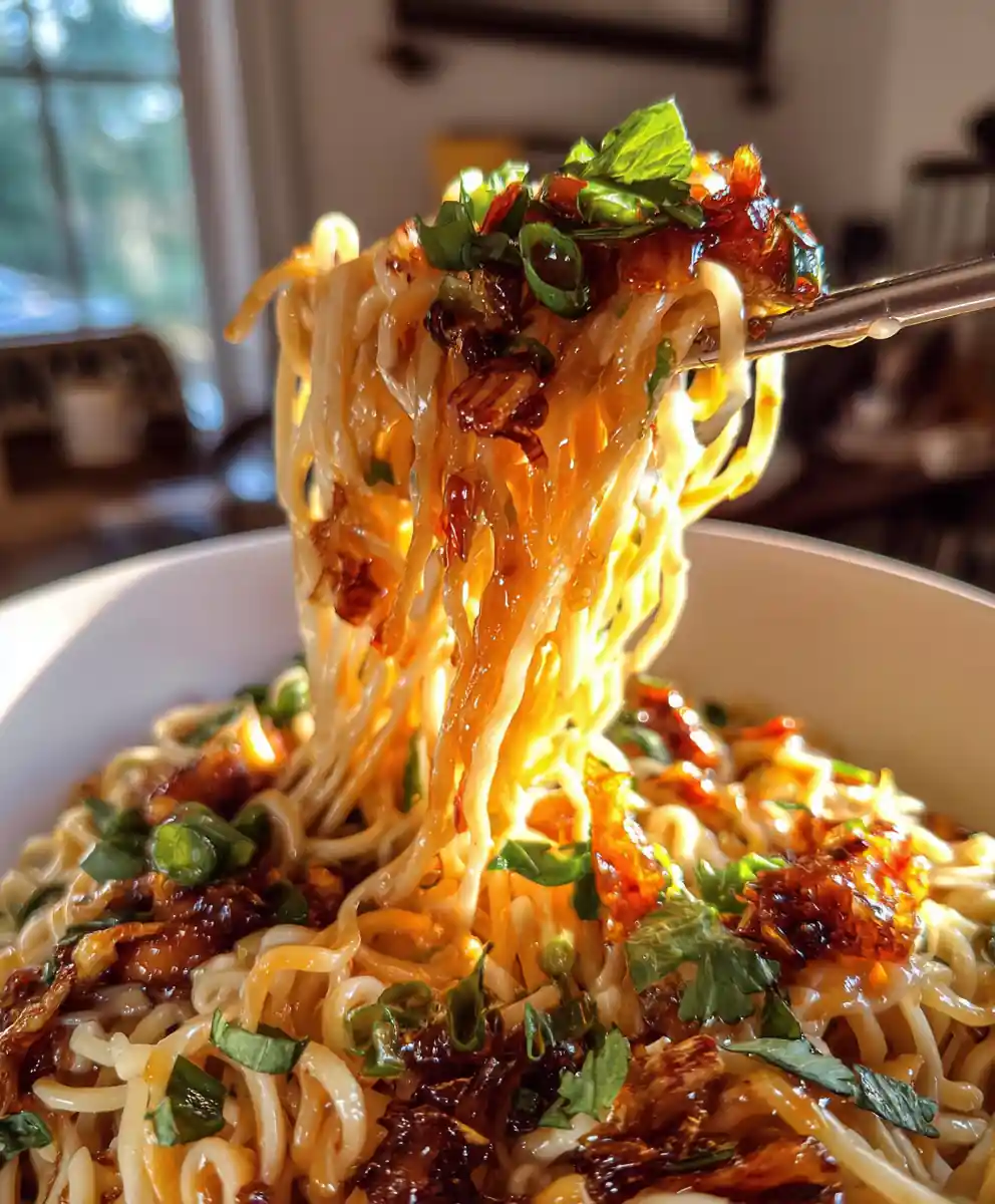 5. Serve and Garnish: Transfer noodles to serving bowls. Garnish generously with the green parts of the green onions, fresh cilantro, and the reserved crispy shallots for texture and color.