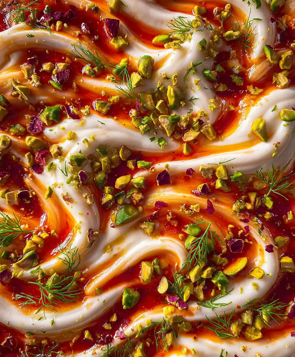 - Combine and Serve: Add the drained pasta to the tomato sauce in the skillet. Toss to coat evenly; the pasta should look beautifully red. If the sauce feels too thick for your preference, add a tablespoon or two of the reserved pasta water until it reaches your desired consistency. To serve, spoon a generous portion of the pasta into a shallow bowl, mounding it slightly. Create a dramatic swirl of the garlic yogurt over the pasta using the back of a spoon. Drizzle the warm, vibrant Aleppo pepper and sumac butter generously over the yogurt and pasta, ensuring a glossy red sheen. Scatter the roughly chopped pistachios primarily over the butter and yogurt for a distinct green crunch, then sprinkle with fresh dill for aromatic freshness.