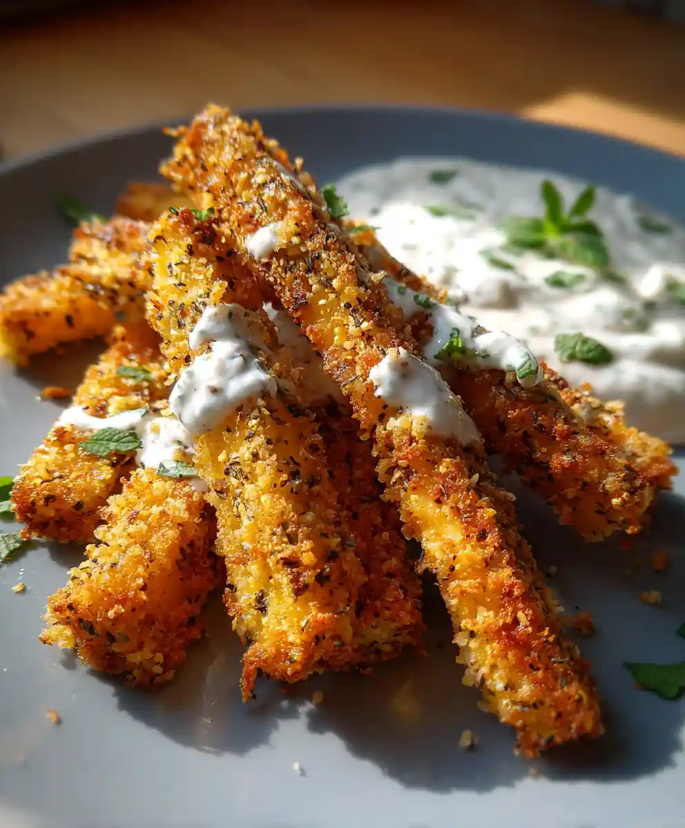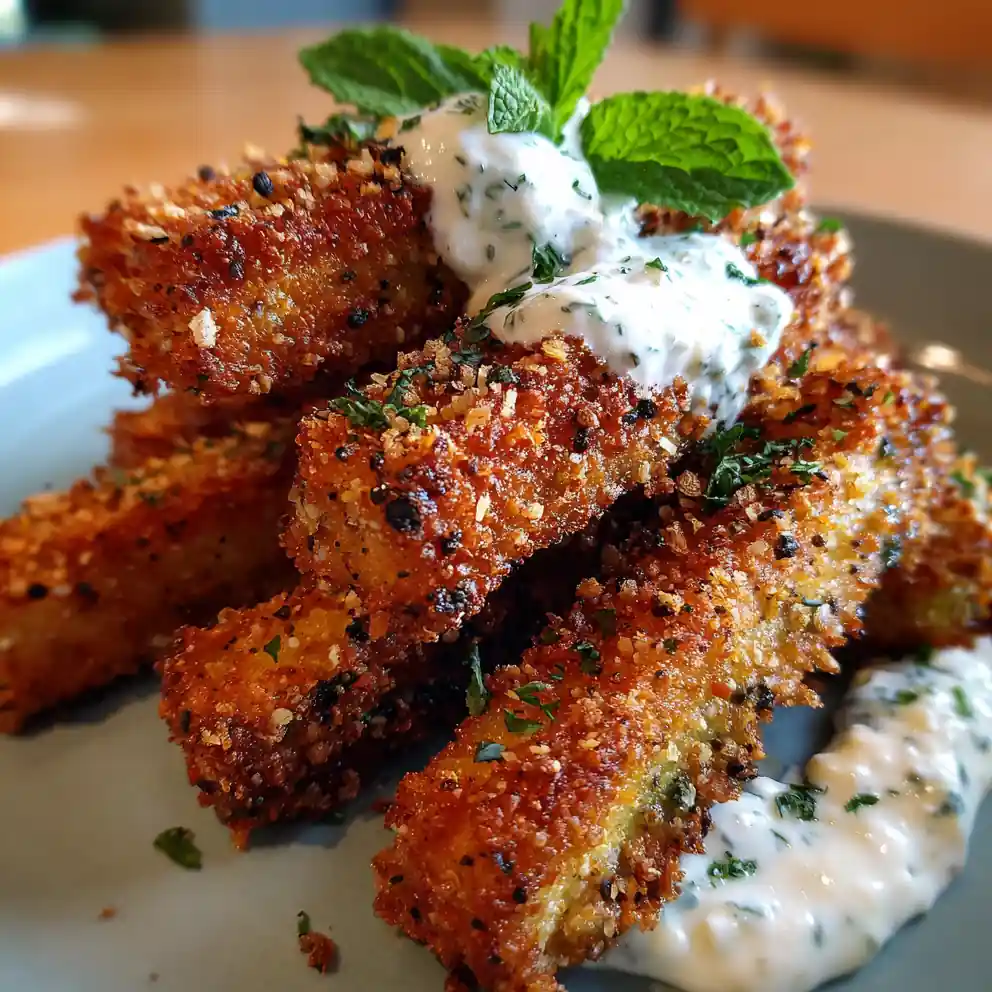 - Serve Immediately: Transfer hot zucchini fries to a serving platter and serve immediately with the creamy feta-mint dip.